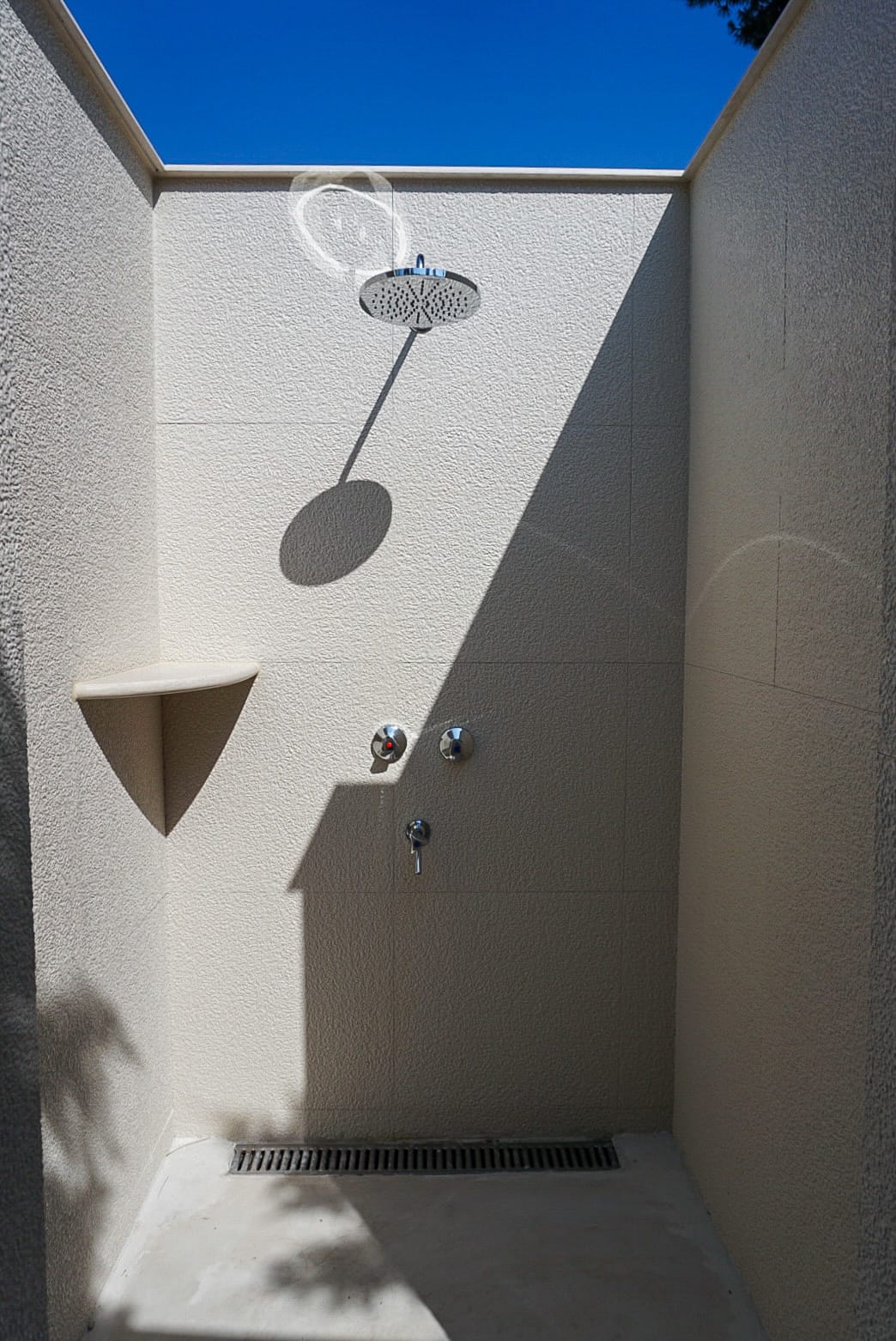 Beachfront space with sun beds, shower and changing room.